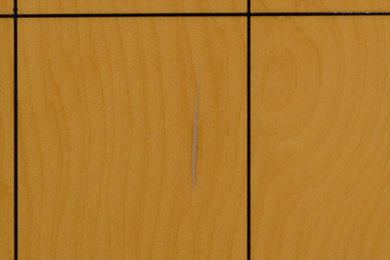 左側に裂けがあり、樹脂で補修しています。