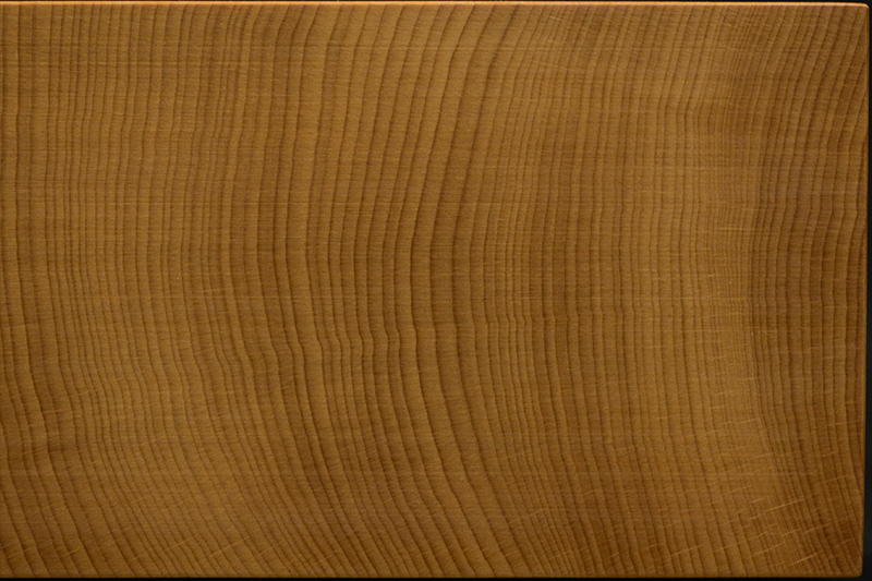 熟練の碁盤師が製作した、貴重な天地柾一枚板の本榧卓上将棋盤です。天面は明るく均一な色合いで、緻密な柾目が概ねまっすぐに通り、すっきりとした端正な木味が感じられる一面です。キズは両木口に割れ跡が見られますが、10年以上の自然乾燥で落ち着いており、キズ口が広がる心配はありません。しっかりとした厚みがあり、指し味を十分お楽しみいただけます。