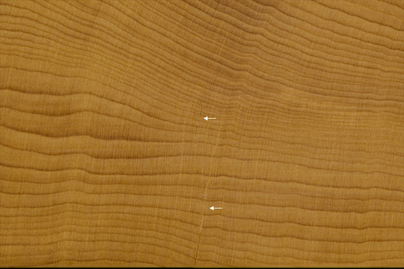 宮崎県伝統工芸士が製作した、板目木裏一枚板の本榧卓上将棋盤で、太刀盛り(たちもり)・蝋仕上げです。木肌は油分に富み、美しい色ツヤと鮮やかな木目が際立っています。キズは木口から裏面にかけて大きめの割れ跡がありますが、15年以上の自然乾燥で落ち着いており広がる心配はありません。しっかりとした厚みのある立派なもので、指し味を十分楽しむことができ、末長くお使いいただけます。