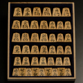 長崎の駒師 秀楽による手彫り・本漆の盛上駒で、光沢のある瀬戸磨き仕上げです。木地は御蔵島黄楊で、木目は柾目板目混合、色合いは多少の違いがあります。
